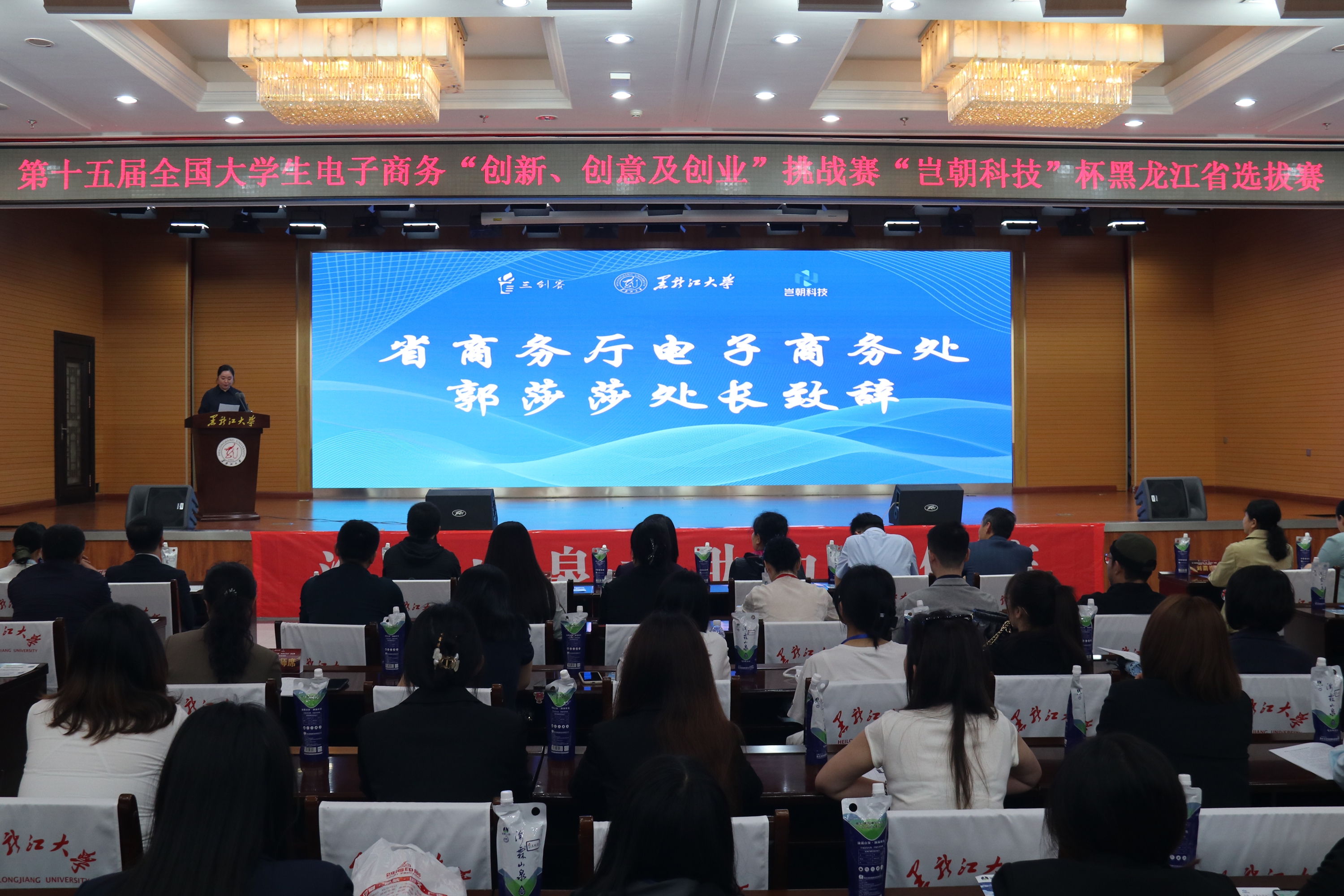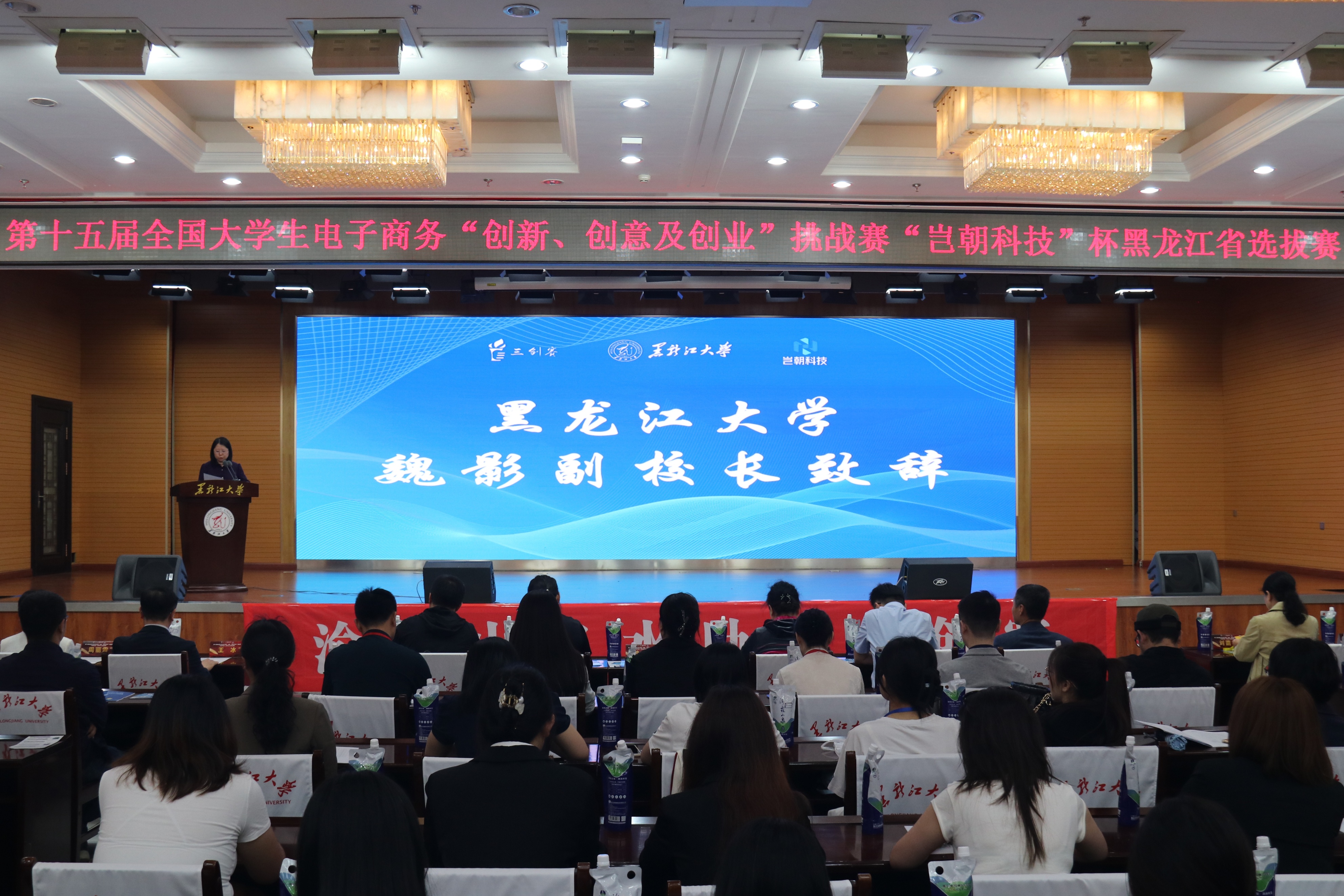 6月8日,由信息管理学院承办的第十五届全国大学生电子商务“创新、创意及创业”挑战赛“岂朝科技杯”黑龙江赛区省级选拔赛在黑龙江大学举行。“三创赛”竞赛组委会专家、评审专家、省人社厅、省商务厅、省电子商务协会、总冠名商以及全省32所高校参赛师生出席大赛开幕式,开幕式由黑龙江大学信息管理学院院长任越主持。